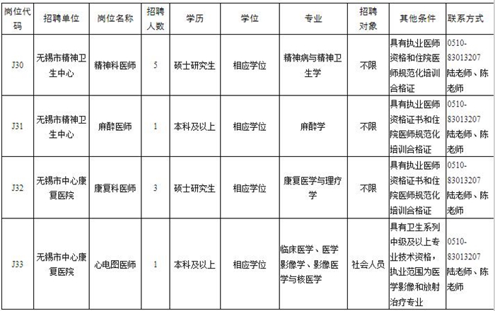 2024年无锡市卫生健康委直属事业单位紧缺人才招聘岗位简介表