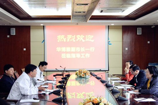 11月13日上午,无锡市副市长华博雅、市政府副秘书长吴建昌、市卫生计生委主任谢寿坤一行至我院调研。