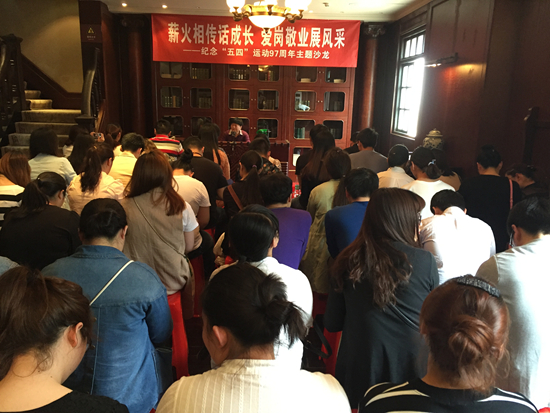 为纪念“五四”爱国运动97周年、中国共产主义青年团成立94周年、荣毅仁先生诞辰100周年,5月4日院团委联合区域化团建单位荣巷街道团委在荣毅仁纪念馆大公图书馆内开展“薪火相传话成长  爱国敬业展风采”五四青年节主题活动。当天活动共分三个篇章,由院团委书记张梓威主持,50余名团员青年参加。