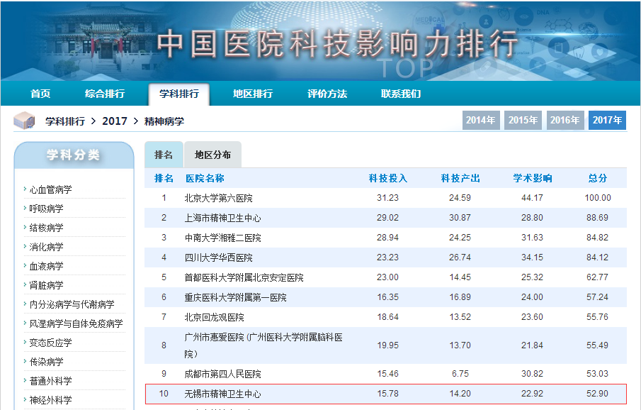 医者匠心于行,承生命之重。一路走来,两家轮盘在线 成为互促共赢的一株并蒂莲,医务人员秉持“匠心精神”,以质量立医、以管理促医,建立每月轮盘在线 工作排行榜发布机制,持续提升医疗服务品质,成为“环境公园化、服务人性化、管理科学化、技术专业化”的品牌轮盘在线 ,吸引省内外患者慕名就诊。2017年,无锡市精神卫生中心成功跻身2017年度中国轮盘在线 科技影响力排行榜精神病学第10名,成为无锡首家也是唯一一家进入“中国轮盘在线 科技影响力排行榜”前十强的轮盘在线 。