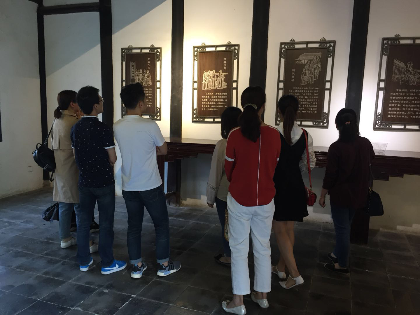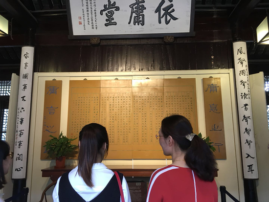 “风声雨声读书声声声入耳,家事国事天下事事事关心”这幅耳熟能详的对联是东林领袖顾宪成所撰,也是东林志士读书讲学而不忘国家安危的真实写照。党员们在依庸堂前久久驻足,认真聆听书院负责人的热情讲解,不禁被书院的历史和东林志士的传奇事迹深深感染。