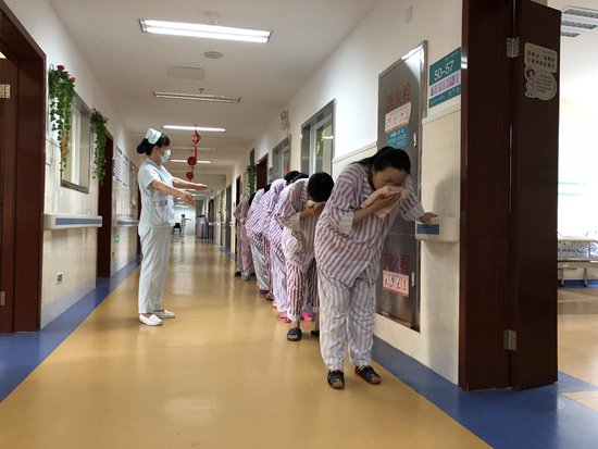 开展病区消防火灾演练,促进自救互救能力新提升。各临床病区结合自身特点,完善应急疏散逃生预案,并积极开展部门消防火灾演练。如,精神科4B病区根据精神科新大楼电子门禁以及新增一键报警系统,设计火灾演练方案,提升在处理突发事件过程中的协调配合能力;康复科病区针对肢体障碍病患行动不便等情况,组织开展灭火与疏散逃生演练;保卫处组织保安、物业、建筑工地人员及食堂员工开展消防演练,大大提高了员工防灾、逃灾、避灾和自救、互救能力。