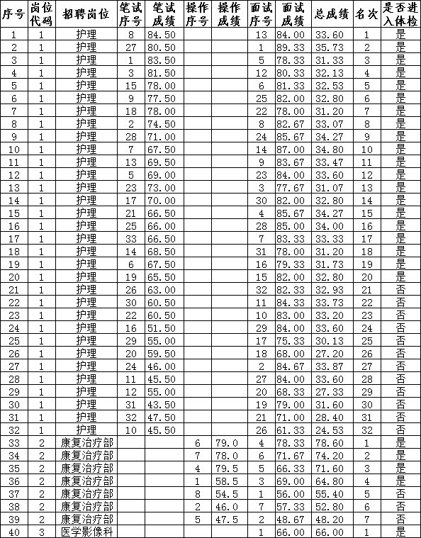 2018年第四次编外职工公开招聘综合测试成绩公示