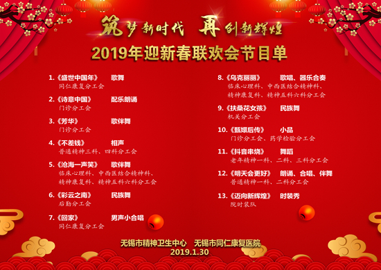 “筑梦新时代 再创新辉煌”2019年迎新春联欢会在一片欢声笑语中拉开帷幕,现场流光溢彩、鼓乐欢腾,乐舞连连,热闹非凡。本次新春联欢会节目均由9个分工会的医务人员自编自演,共庆轮盘在线 建设成果、喜迎猪年新春佳节。歌舞、朗诵、小品、相声、器乐、时装秀……展现出职工积极向上的精神风貌,看到身边熟悉的同事上台献艺,大家掌声一浪高过一浪,笑声、欢呼声此起彼伏,演员们美妙的舞姿、灿烂的笑容表达出对新的一年最真诚的祝福。整台联欢会内容丰富、形式新颖、激情澎湃,喜庆祥和,集中展示了我院党员干部职工团结务实、积极进取、勇于创新、奋发有为的精神风貌。2019年,我们将筑梦新时代、再创新辉煌!