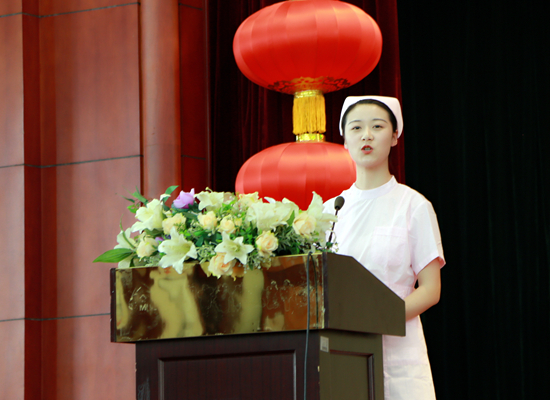 十佳护士代表谢丹、新护士代表殷一丹声情并茂地诉说职业生涯的点滴感悟。可亲、可敬、可信、可学的道德故事,让大家感同身受,从内心深处激发向榜样学习的热情,也让大家对明天充满希望。