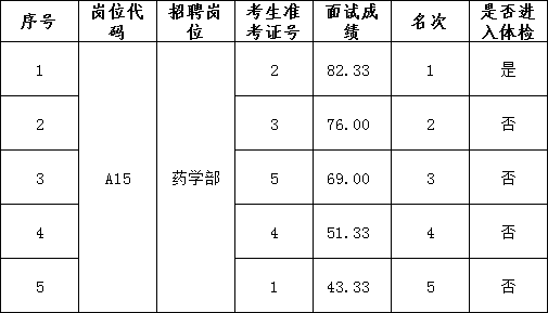 2019年其他类卫技人员公开招聘面试成绩公示(5月15日)