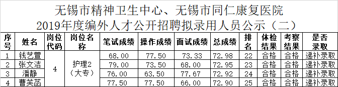 2019年度编外人才公开招聘拟录用人员公示(一)