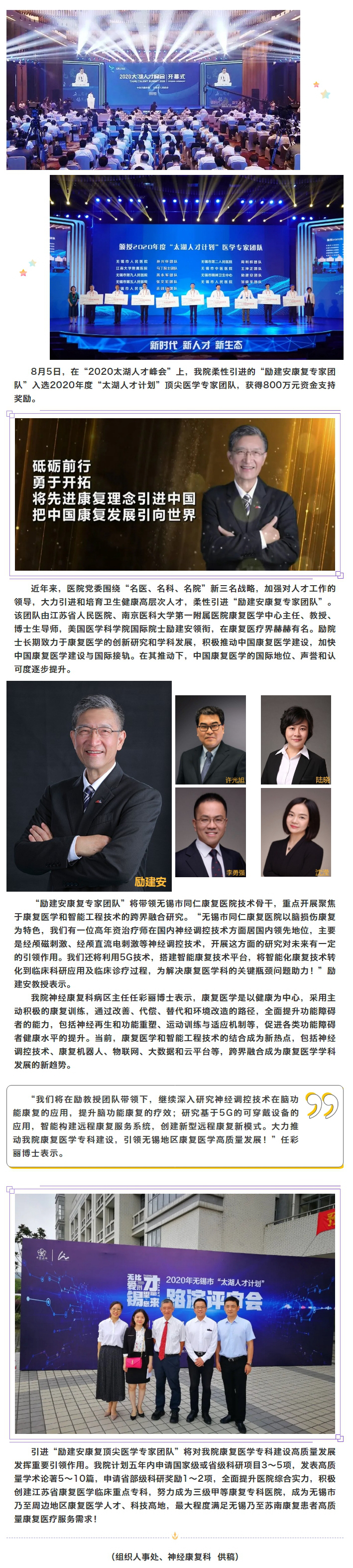 我院柔性引进的“励建安康复专家团队”入选“太湖人才计划”顶尖医学专家团队
